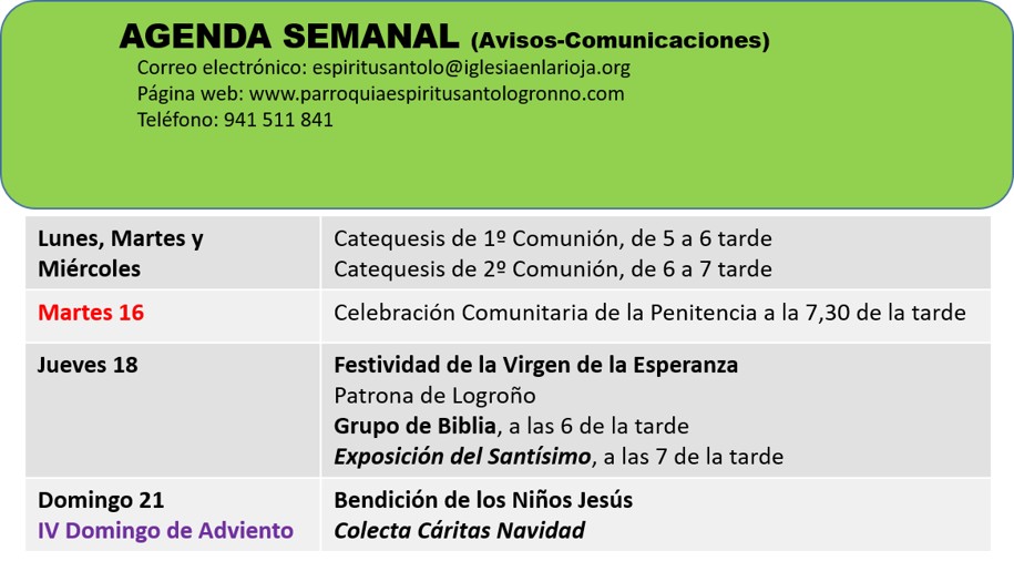 que tendrá lugar en la parroquia, el martes 16 de diciembre, a las 7,30